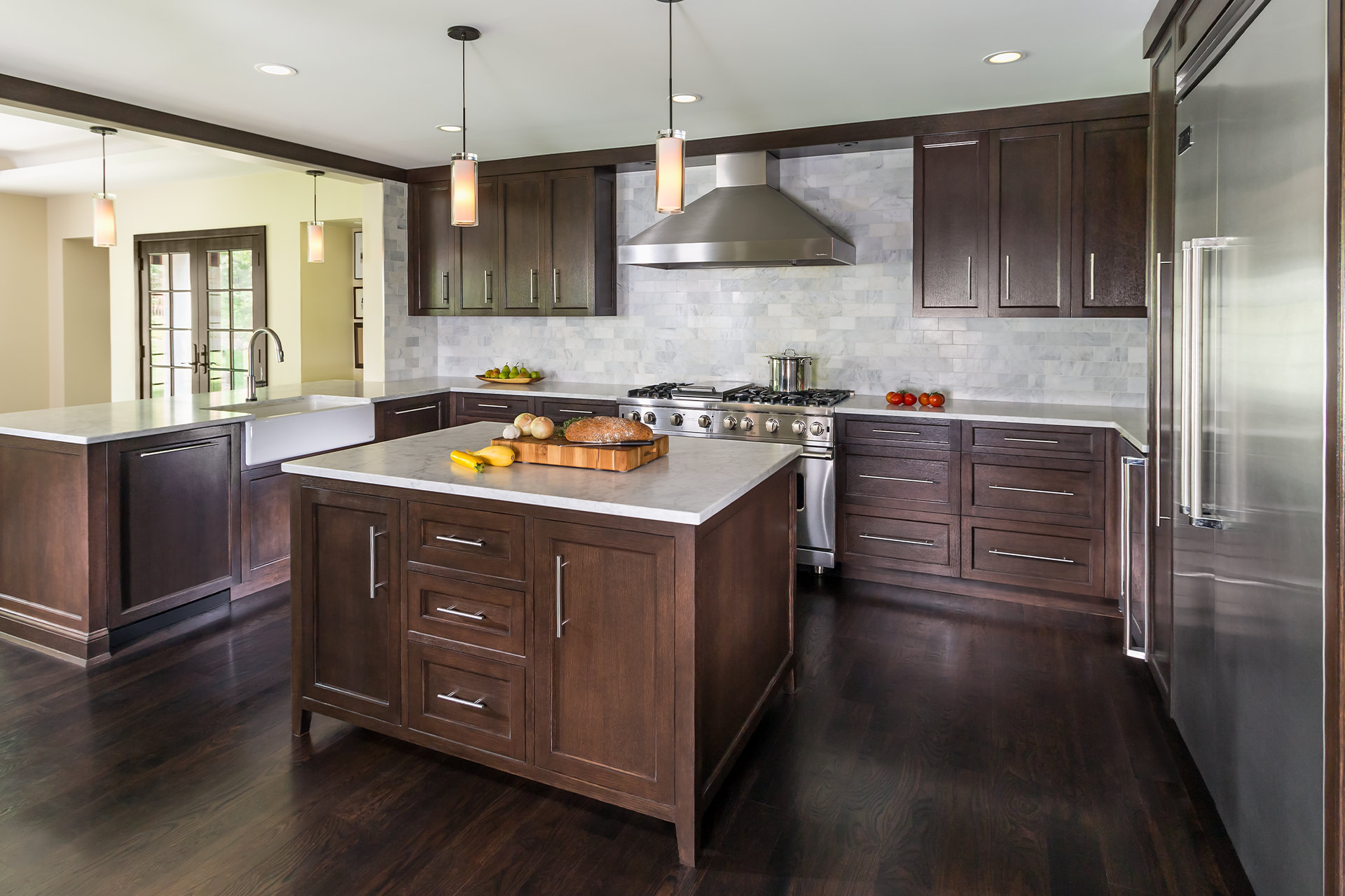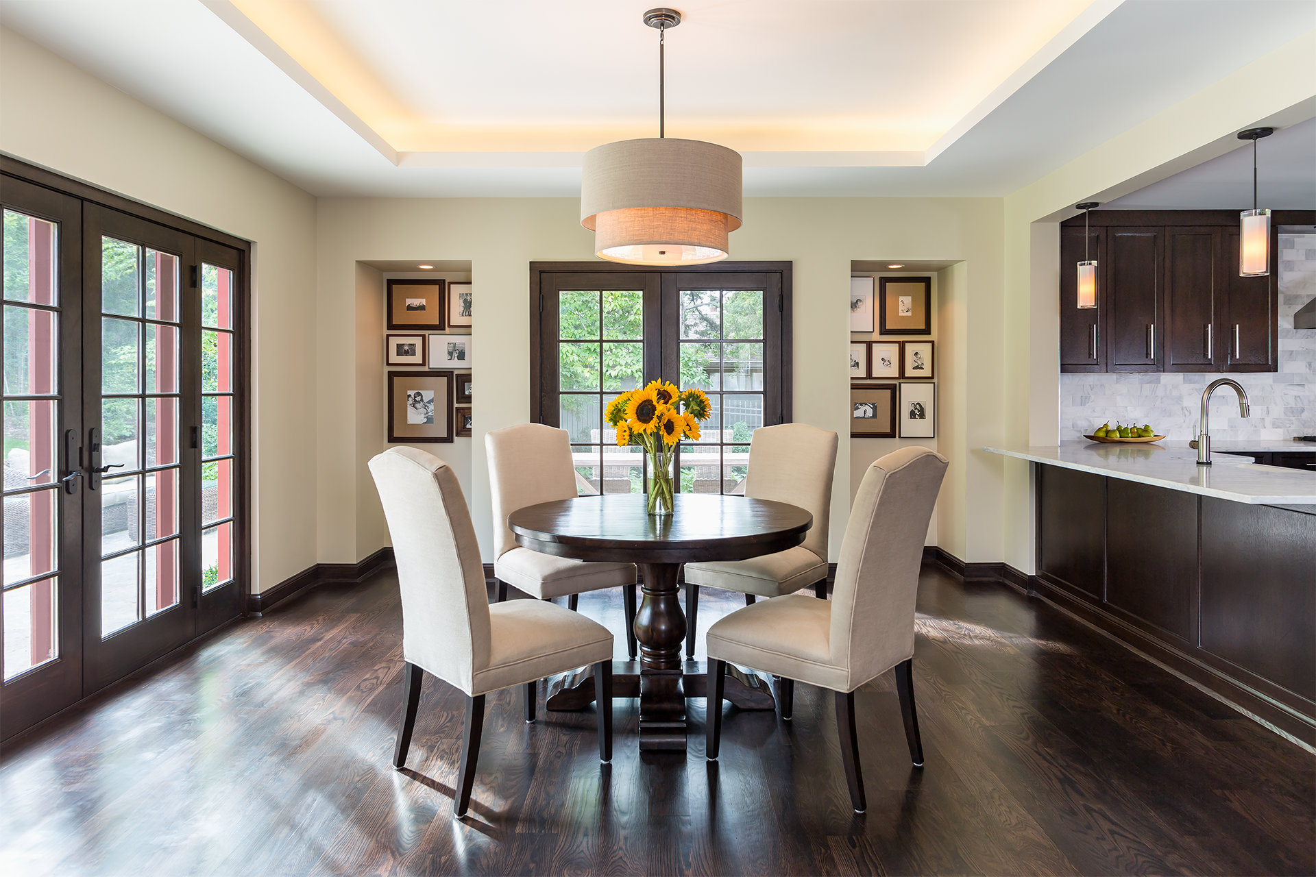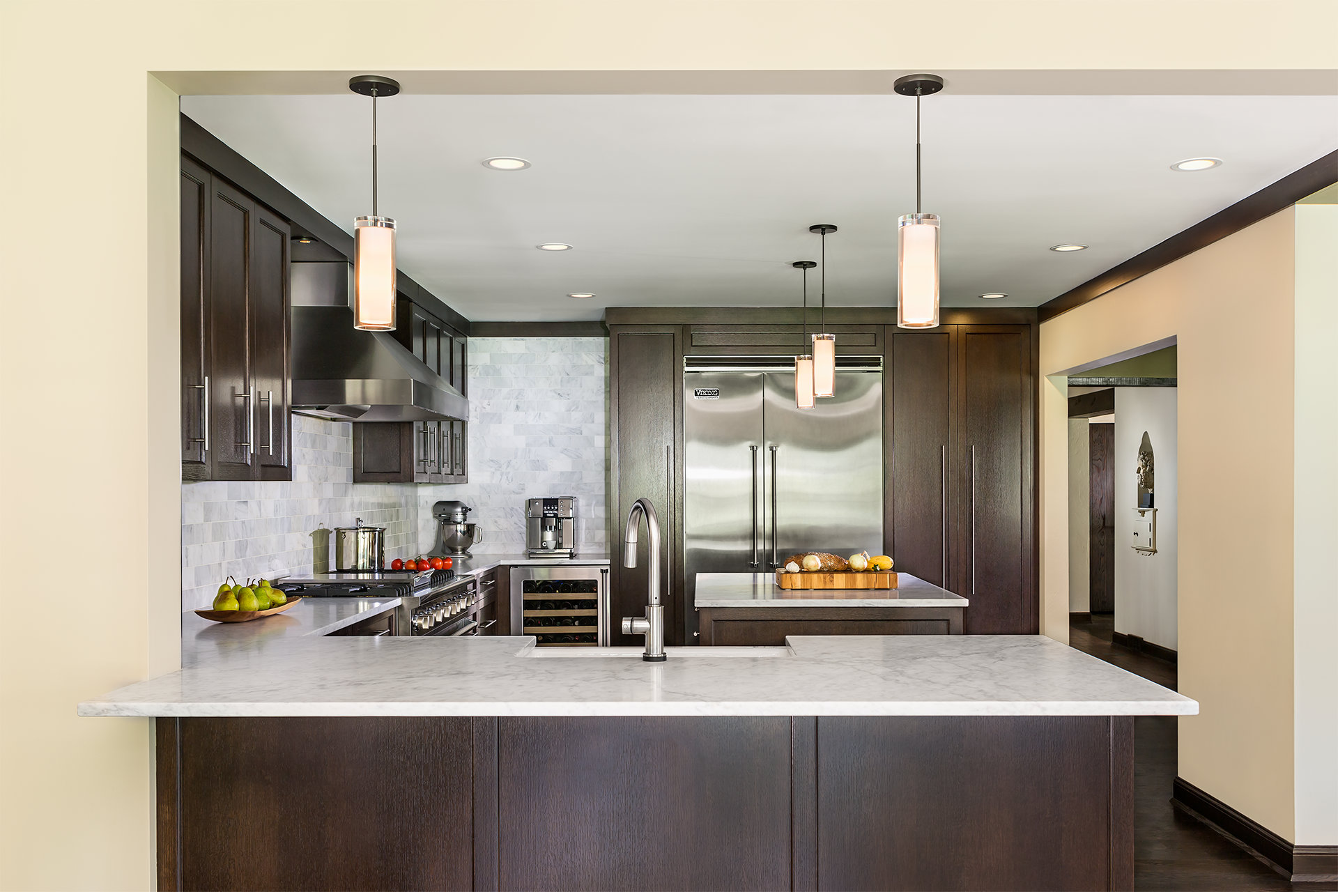 This charming Mediterranean home, built in 1936, was purchased by a couple who fell in love with the detail and character of the well-detailed home. Problematic to the existing space was a highly-compartmentalized floor plan and kitchen that challenged opportunities to open and consolidate living space. Working closely with our client, the U+B team brought an open floor plan into the heart of the house, preserving the unique character and aspects the owners were first attracted to. The resulting gourmet kitchen is flanked by the original barrel-vaulted formal dining room and framed by an addition that connects the house and garden through a new living room and informal dining area. The renovation and addition allowed for the character of the home to be preserved while helping move the program and plan of the home into a more flexible and dynamic space. Focused on future opportunities, the addition is constructed to accommodate a roof deck accessed from the garden and taking advantage of the potential for private outdoor living space adjoining each bedroom.