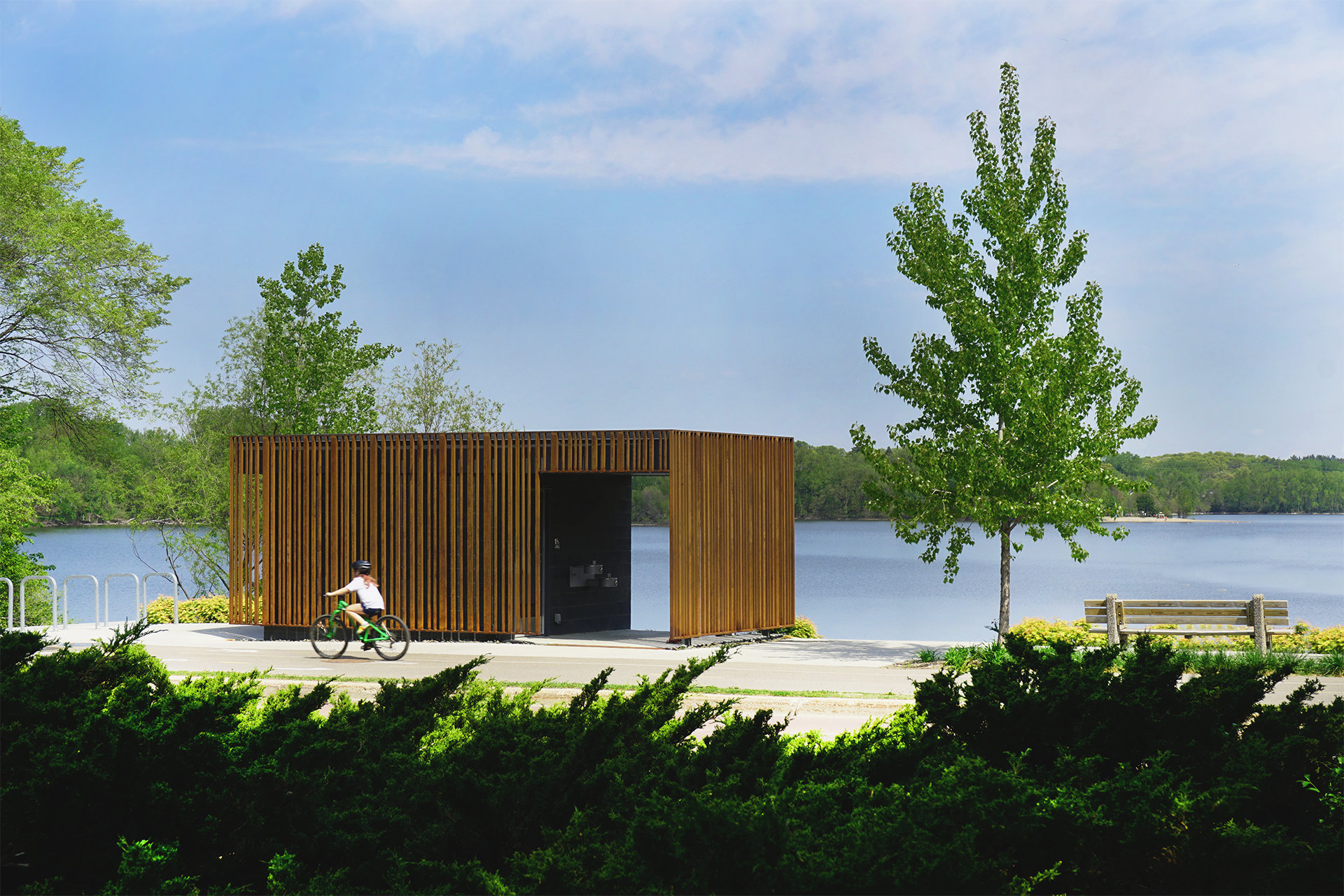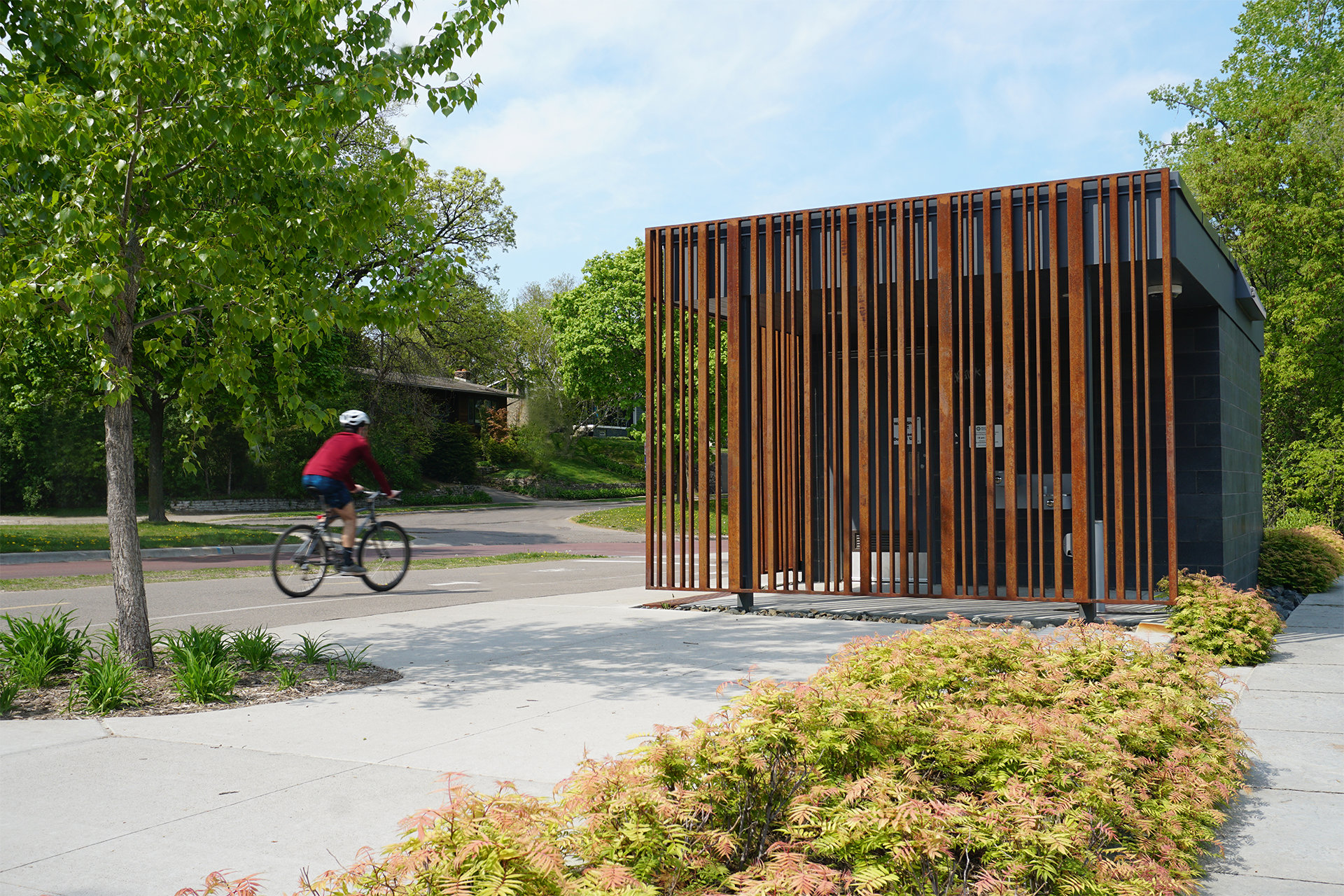 Our solution for the building was to wrap this utilitarian structure with a naturally weathering steel screen which gives the building an abstracted sculptural quality and frames a view to the lake at its entry. Through the creative use of materials and intensive community engagement, we worked as a team to create a truly harmonious relationship between the building and the unique site at Cedar Lake.