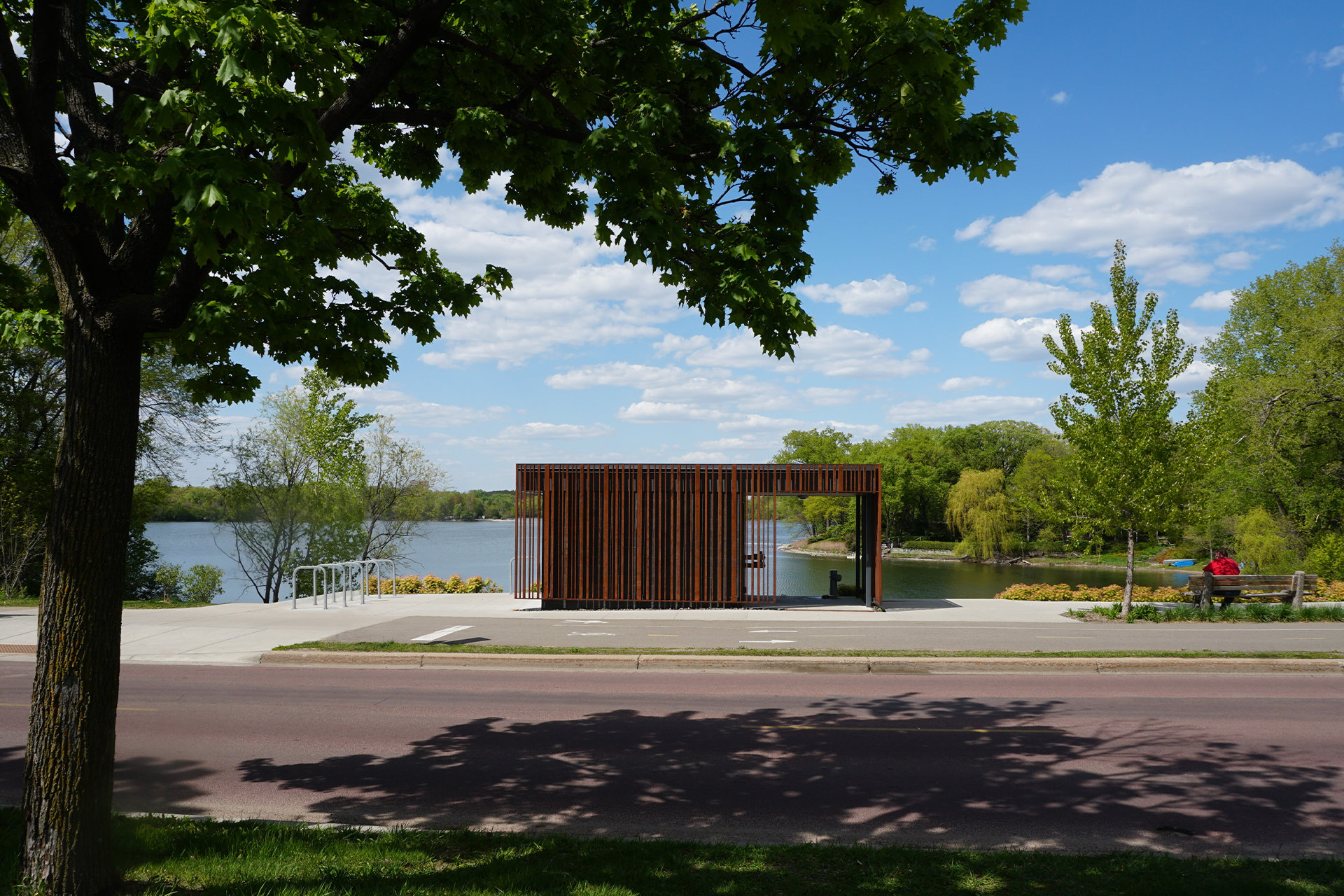 U+B collaborated with Damon Farber Landscape Architects and Pierce Pini to design a terraced lakeside park and restroom building on the south side of Cedar Lake in Minneapolis. The existing beach area was well-used but lacked structure and a much-needed buffer between the well-travelled neighborhood streets and trails and the sandy beach.