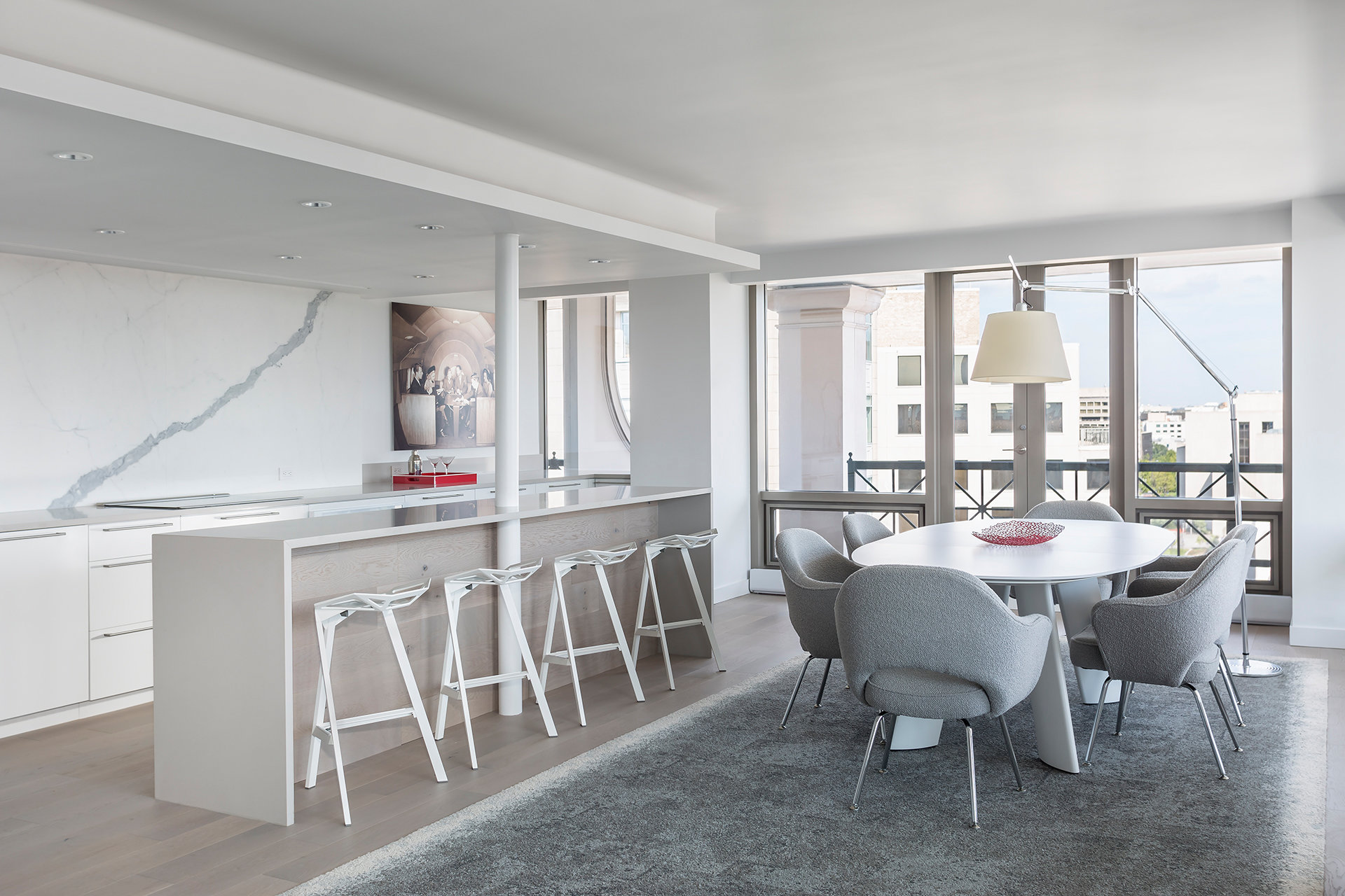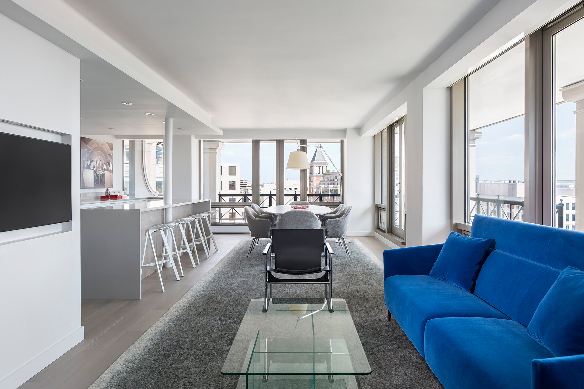 Existing infrastructure, that could not be relocated, coupled with only 8’0” slab to ceiling height delivered an exceptional challenge for this corporate condominium renovation in the heart of Washington DC.