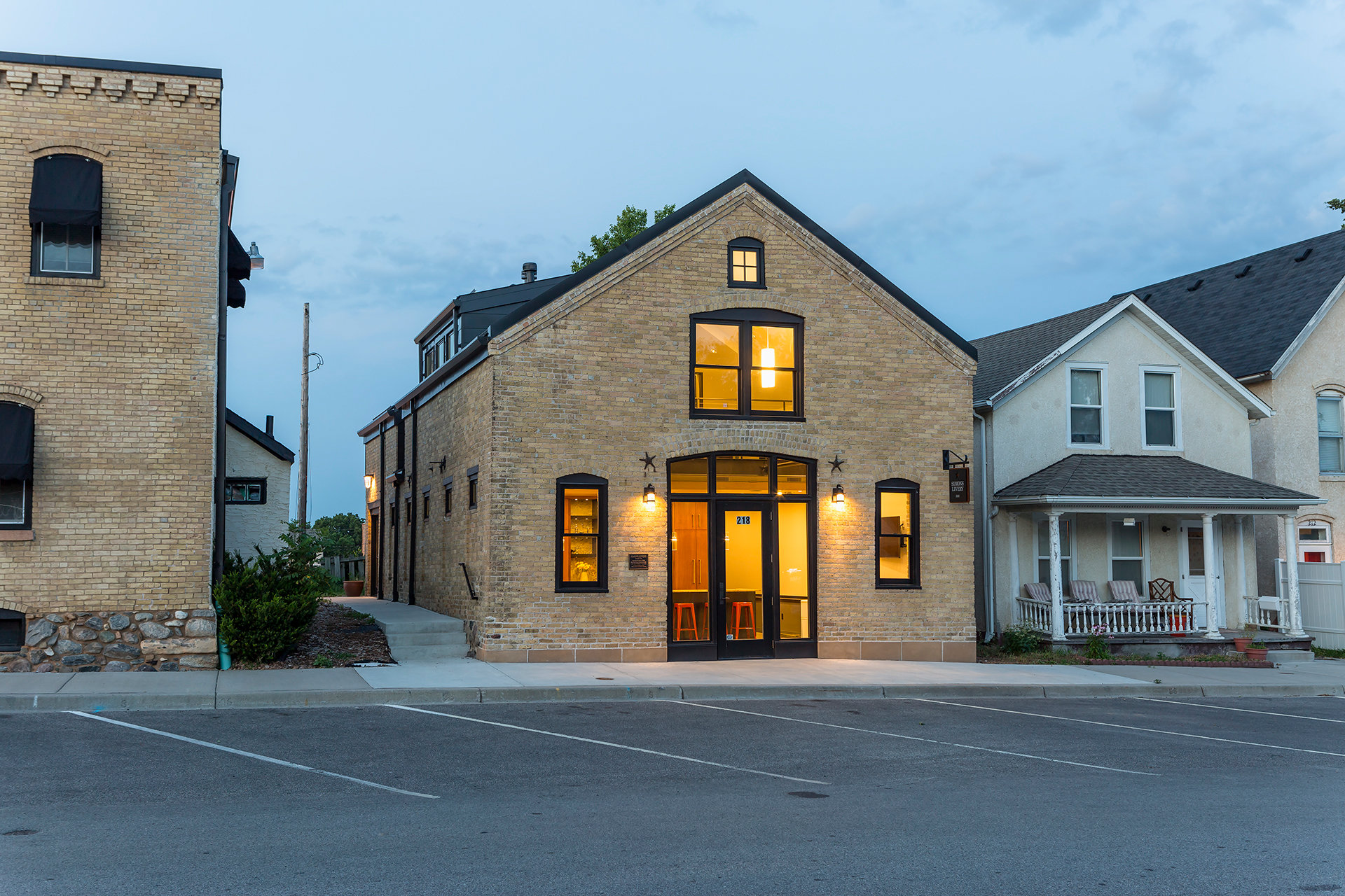 Originally intended as an “urban cabin” for the owners to escape their professional city life on weekends, their love for the quaint life Chaska offered drew them in to purchase a second historic property blocks away to take up permanent residence in the city. In addition to using the livery as a private workshop for personal projects, they currently operate the livery as a rentable community event, gallery and party space and corporate off-site studio complete with modern amenities.