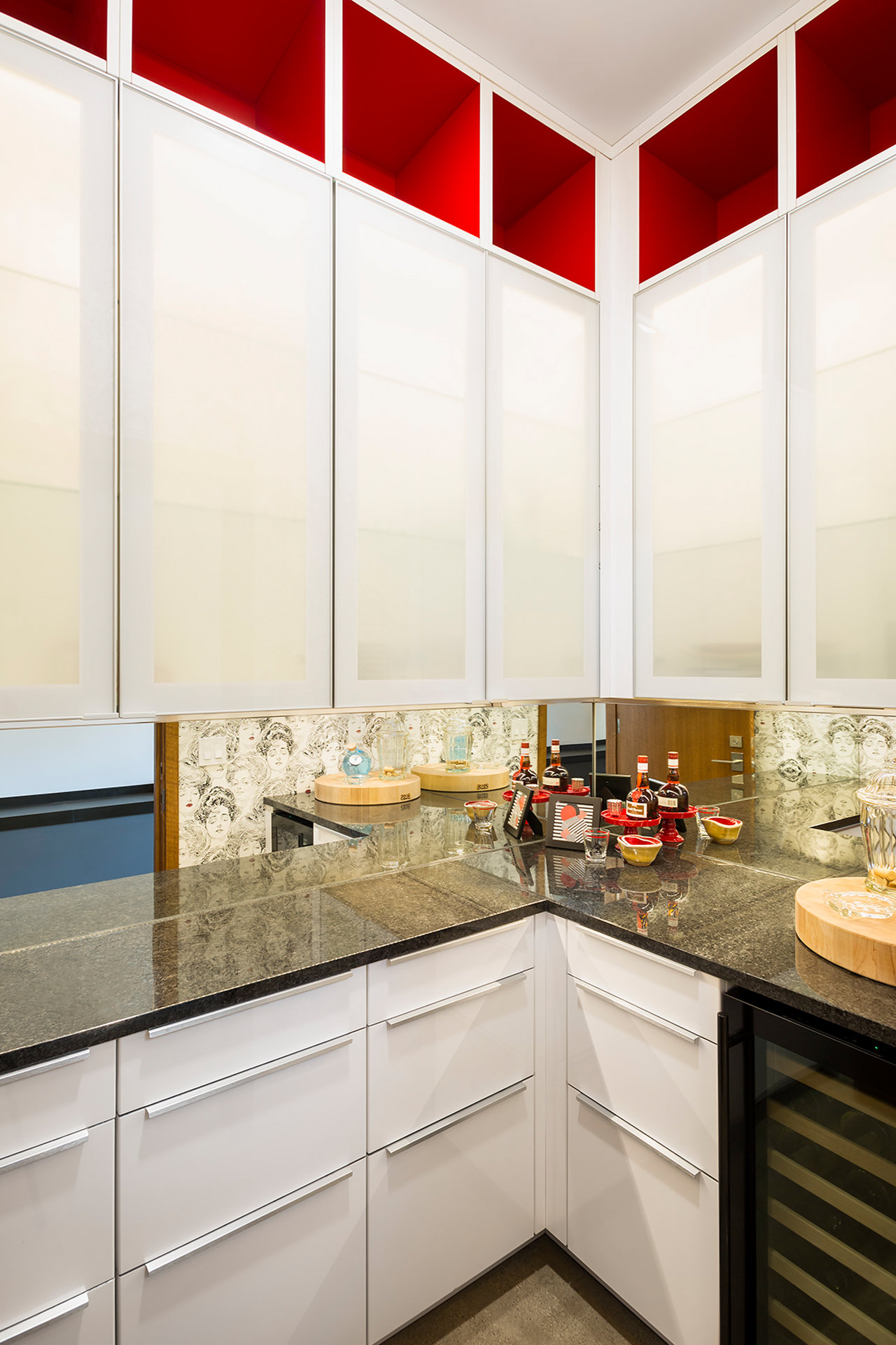 Open space, a significant kitchen and contemporary detailing presents a crisp interior that openly embraces the historic shell and the owner’s relevant collection of curiosities, art and repurposed finds. Large fir beams original to the building were salvaged during the roof rehabilitation and recycled into a barn door at the back shed, a rugged work bench, and several mobile work tables serving everything from crafts and corporate off-sites, to Thanksgiving dinner.