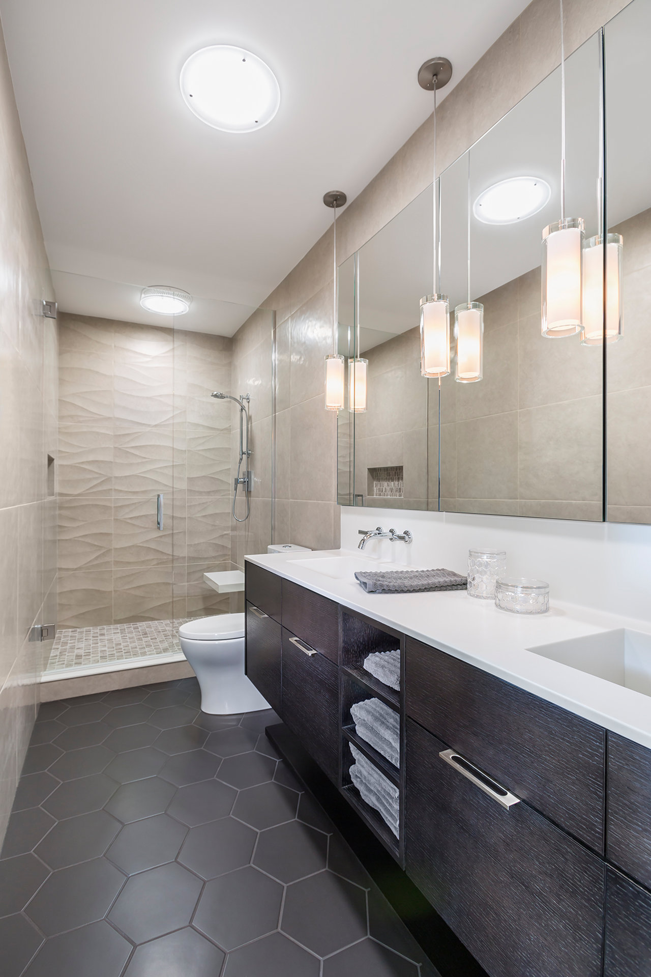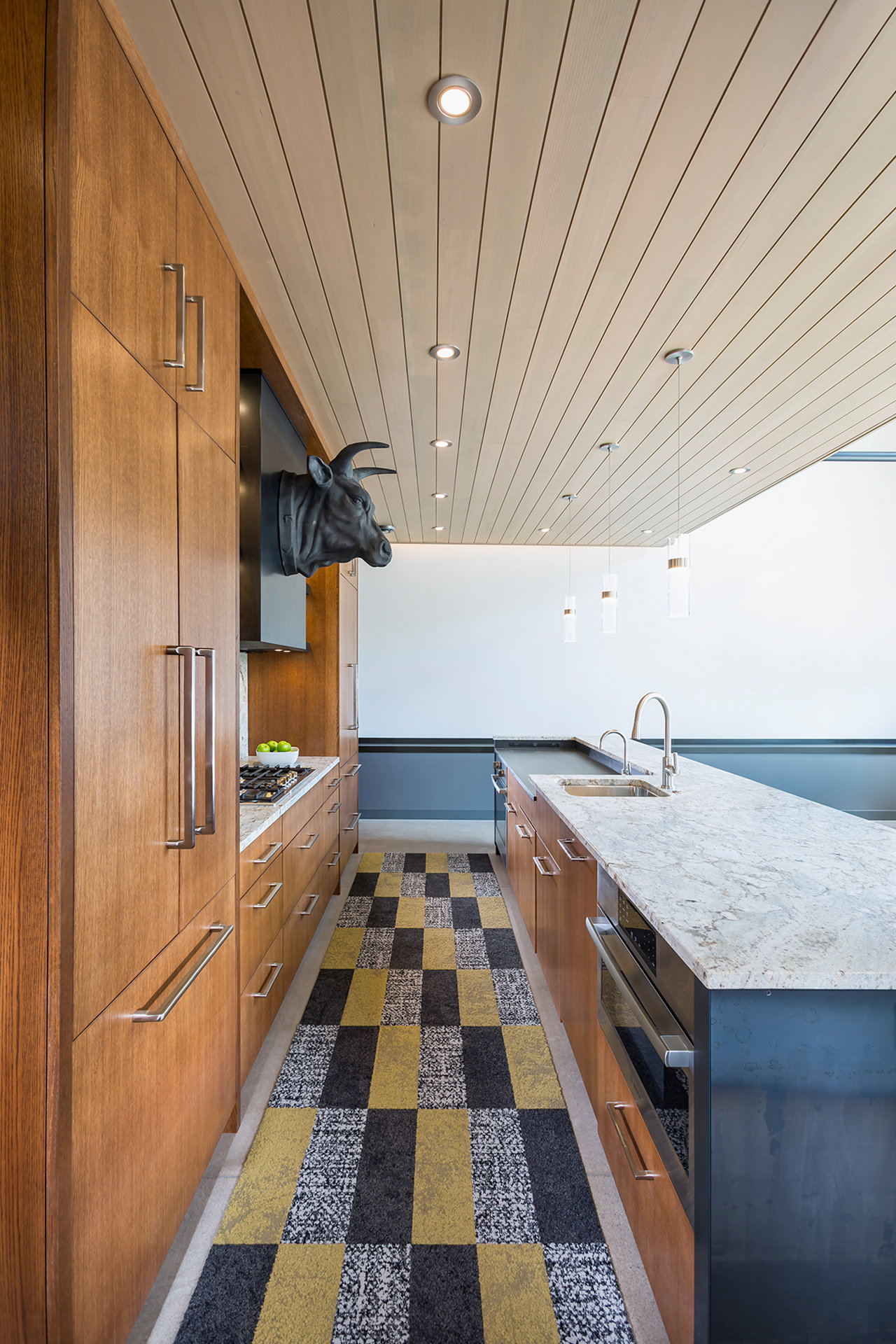While incorporating a sleek palette of materials that hints at its rustic past, the clean lines, metal, and glass of the building’s new interior are well suited to today’s demand for modern amenities. The building boasts hydronic in-floor radiant heat throughout allowing the polished concrete to keep bare feet warm and comfortable on cold days. Flanking insulated gallery walls, and a newly structured and insulated roof supports opportunities for natural light through set-back shed dormers that respect the extremely close property lines and neighbors within arms’ reach, while maintaining thermal comfort in the building. Lighting and mechanical systems are carefully integrated into the ostensibly floating second floor plane, fed from the core of the “ship” which is cladded with carefully detailed wood panels and doors.