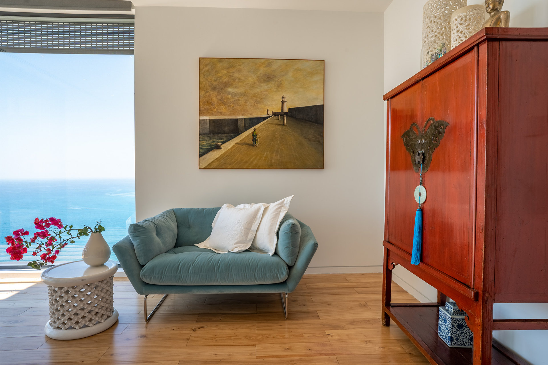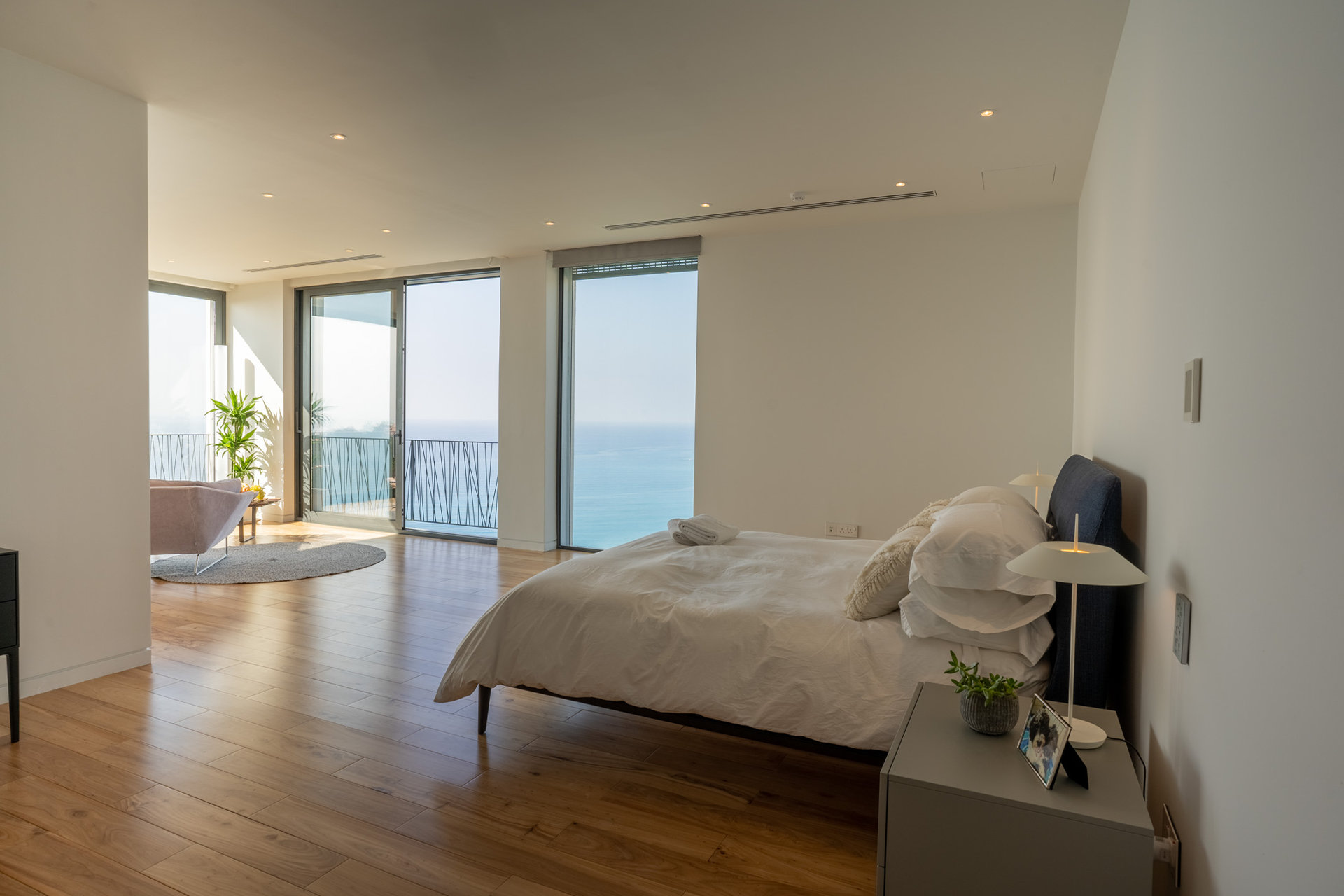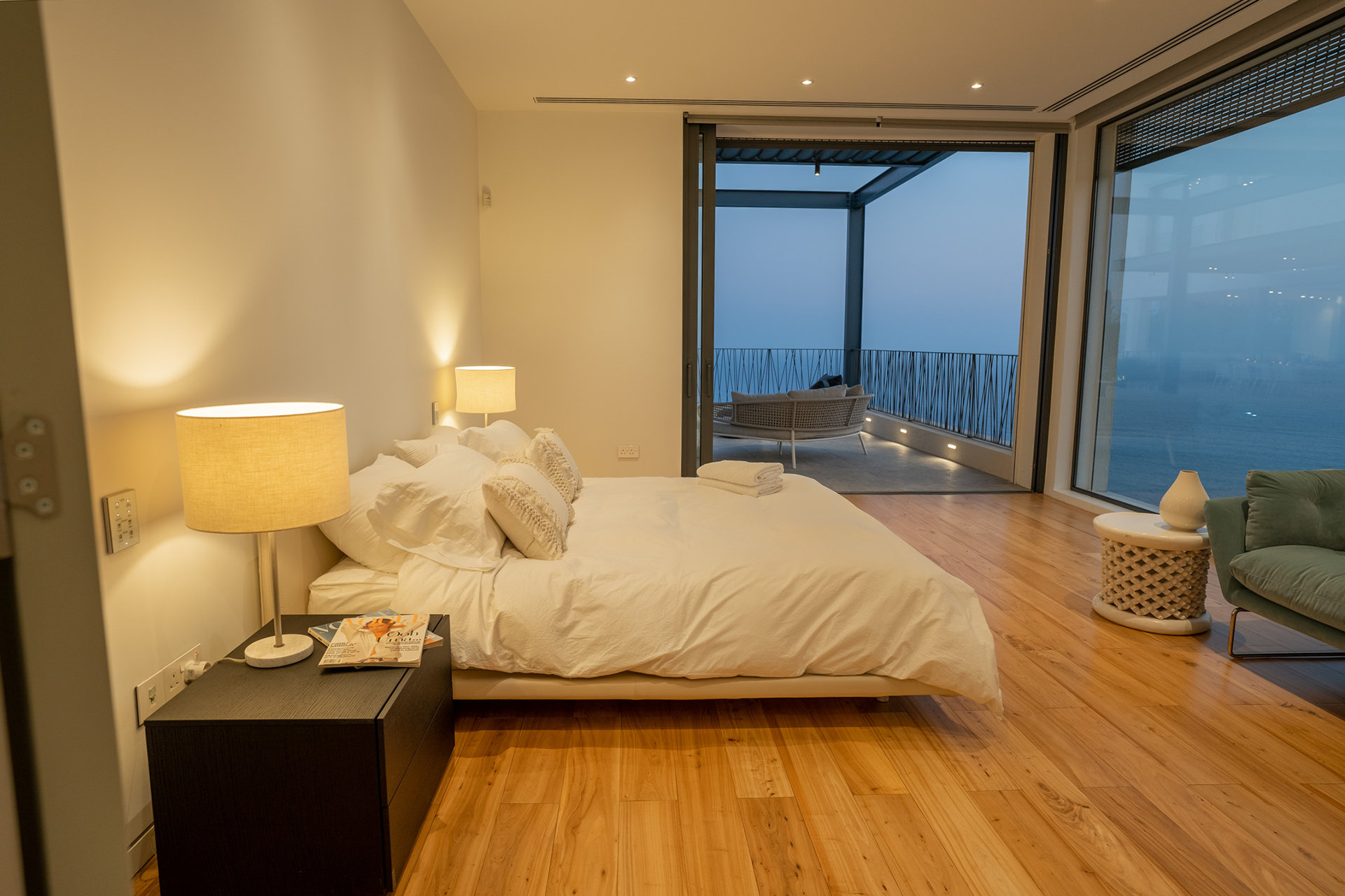 This home was designed as a retreat for a couple, their children and extended family that have roots on Cyprus. The house sits on a tall hilltop overlooking the Mediterranean Sea and the Bay of Limasol.