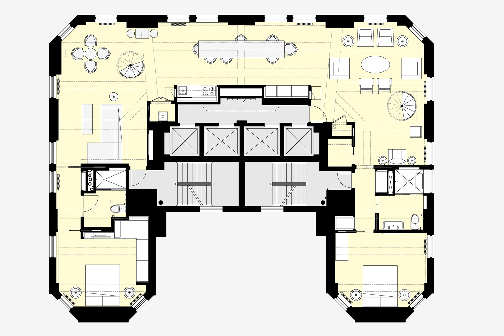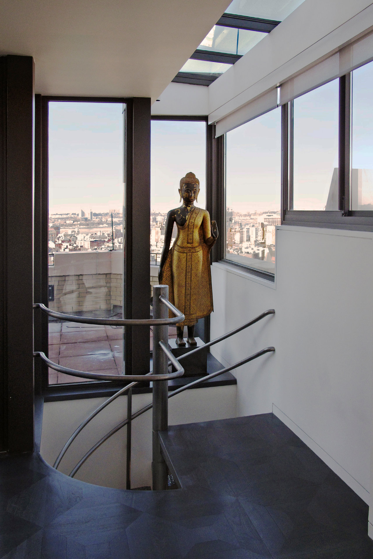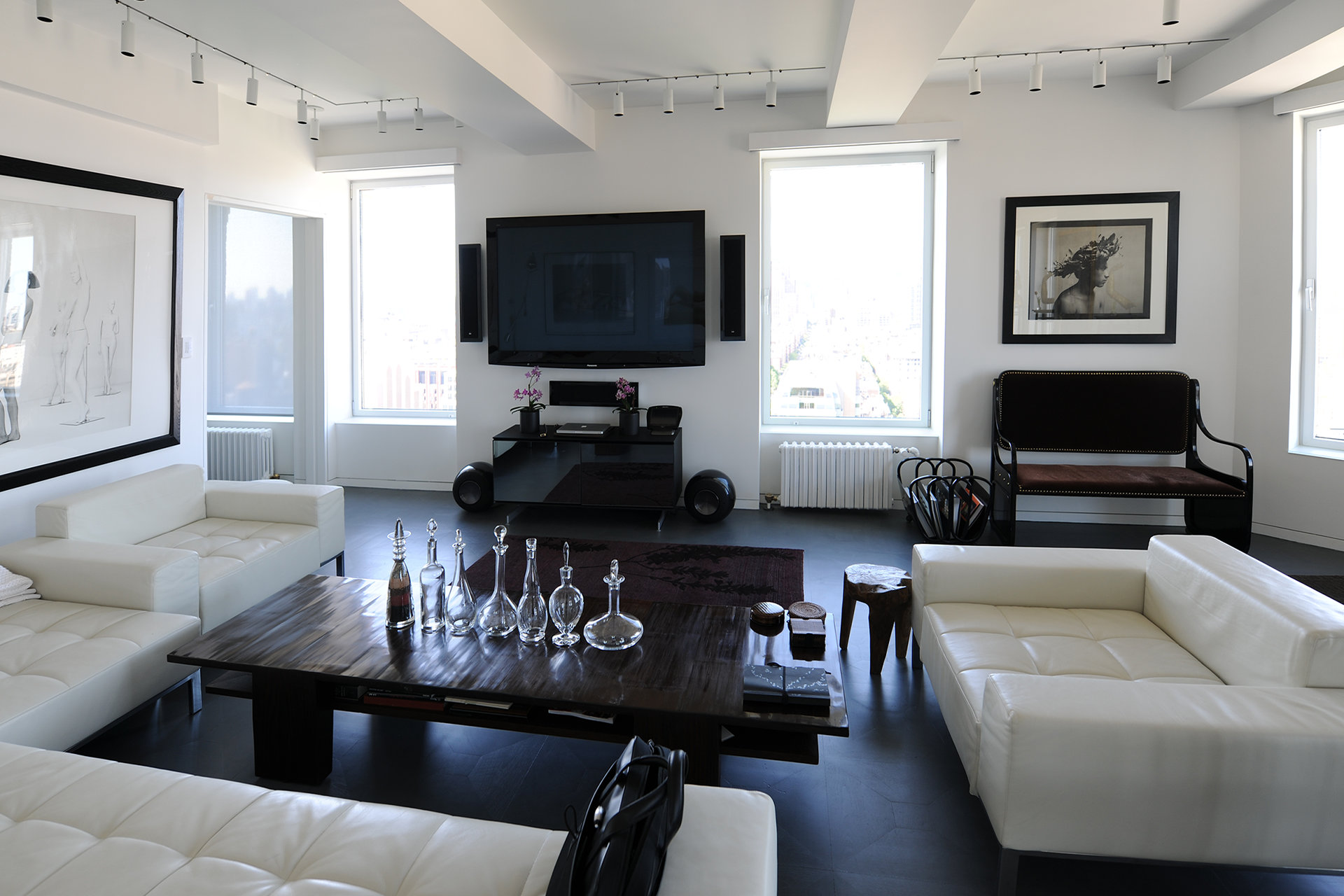 Two older apartments (one formerly owned by Robert Mapplethorpe) were combined into a single spectacular penthouse space on two levels at the historic 5th Avenue building in New York. The environmentally driven project included sustainable material finishes, state of the art lighting and building control systems, new windows as well as a new air distribution and filtration system.