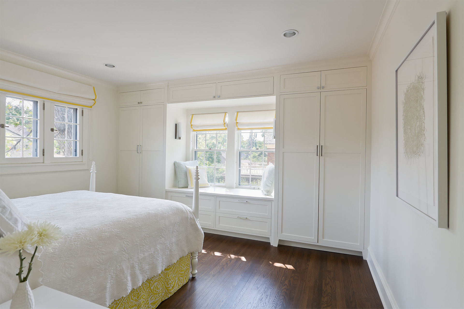 This subtle addition to a Minneapolis home created an efficient layout accommodating a master suite, home office and much-needed renovations of two existing bathrooms. The design, for a family of five, included multiple storage solutions and cabinetry in the bathrooms and master suite while maintaining a sensitivity to the trim and tile patterns original to this 1920s-era house. Large bays of windows, a vivid color palette and abundant bookshelves afford the freelance writer of the family an upbeat home office to retreat to.