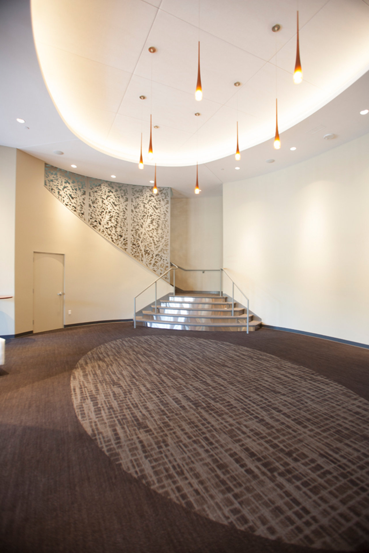 Re-considered and re-branded, this structure has been successfully adapted to serve as a new conference center and reception space that hosts a wide array of events and seminars throughout the year. Initially presented with a design scheme developed by others, our team looked extensively at the building and surroundings to develop an alternate option that converted the existing maintenance area into the main lobby and entry point to the facility. The advantages of the alternate scheme celebrated the existing building facade while creating a clear sense of entry that had been lost in the original scheme. Other advantages realized through this alternate scheme internalized the elevator and coordinated mechanical systems, saving a considerable sum to the overall project budget.